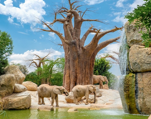 Начни свое путешествие с африканской саванны, где бесконечно тянутся в горизонт равнинные золотые земли, усеянные деревьями акации и зебрами, пасущимися стадами, словно позируя для открытки. И не пропусти возвышающиеся баобабы, обрамляющие водопад, в котором охлаждаются слоны. Поверь нам, это ощущение прямо из документального фильма о природе.